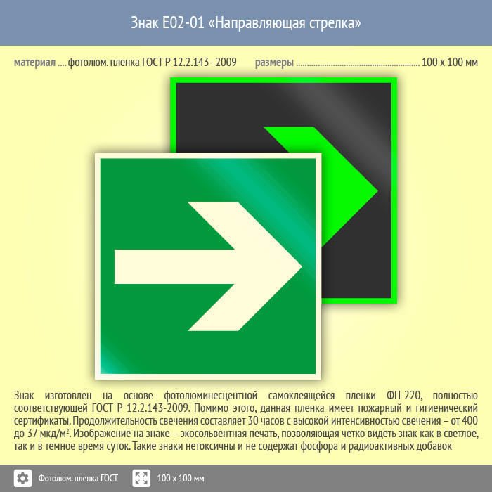 Знак E02-01 «Направляющая стрелка» (фотолюминесцентная пленка ГОСТ 34428-2018, 100х100 мм) в Бердске купить