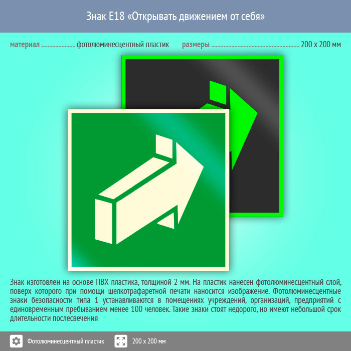 Знак E18 «Открывать движением от себя» (фотолюминесцентный пластик, 200х200 мм) в Бердске купить