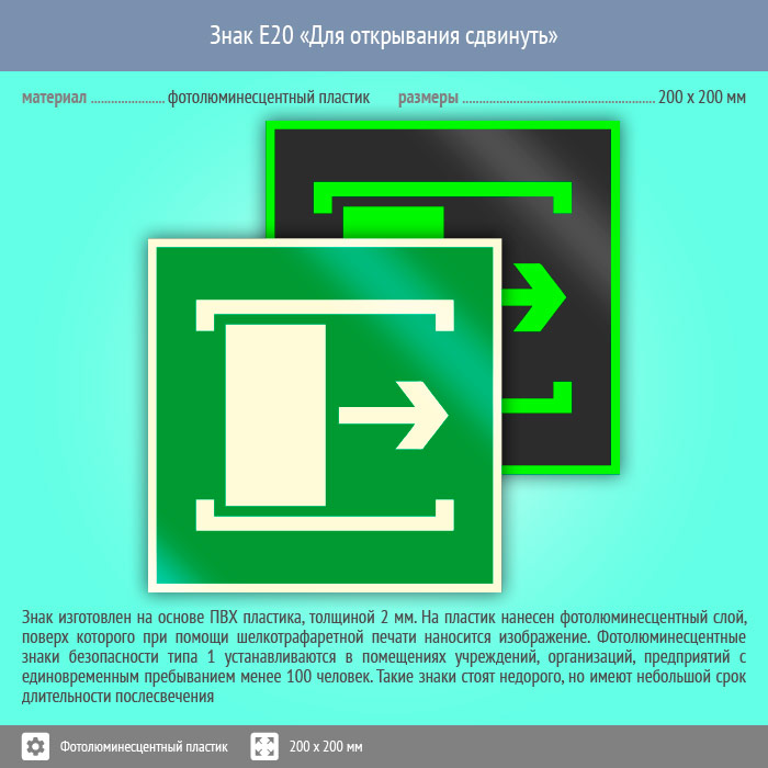 Знак E20 «Для открывания сдвинуть» (фотолюминесцентный пластик, 200х200 мм) в Бердске купить