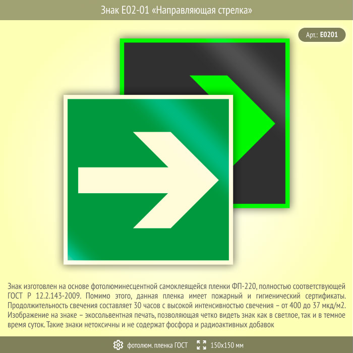 Знак E02-01 «Направляющая стрелка» (фотолюминесцентная пленка ГОСТ 34428-2018, 150х150 мм) в Бердске купить