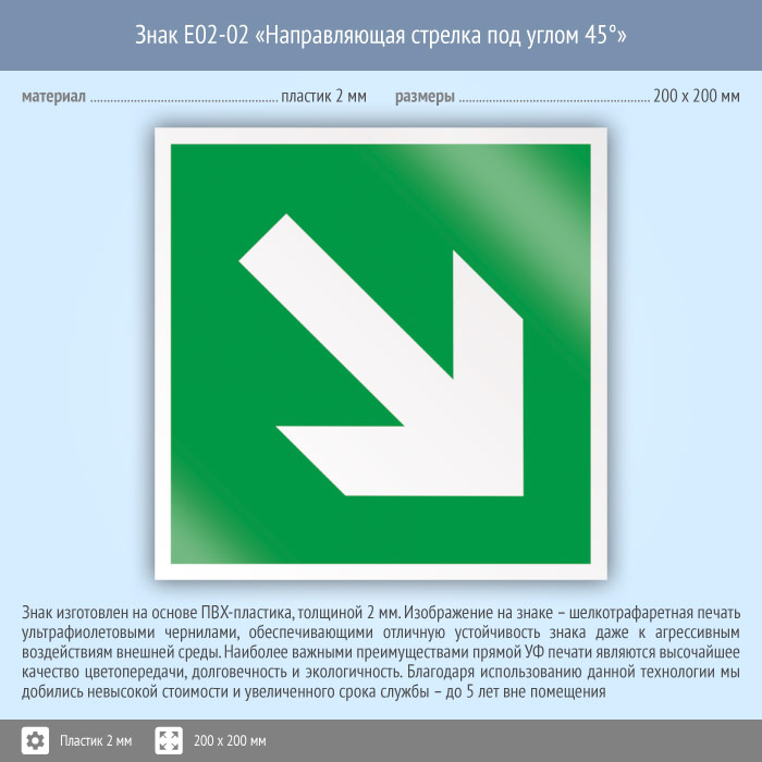 Знак E02-02 «Направляющая стрелка под углом 45°» (пластик, 200х200 мм) в Бердске купить