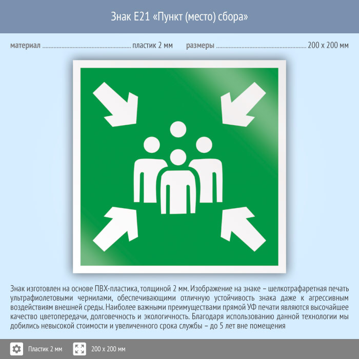 Знак E21 «Пункт (место) сбора» (пластик, 200х200 мм) в Бердске купить