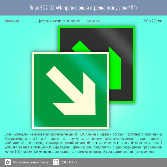 Знак E02-02 «Направляющая стрелка под углом 45°» (фотолюминесцентная пленка, 200х200 мм) в Бердске купить