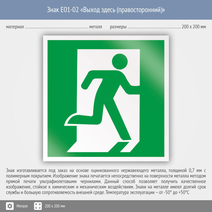 Знак E01-02 «Выход здесь (правосторонний)» (металл, 200х200 мм) в Бердске купить