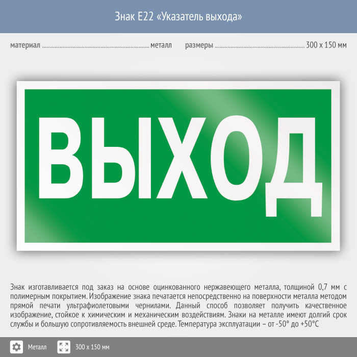 Знак E22 «Указатель выхода» (металл, 300х150 мм) в Бердске купить