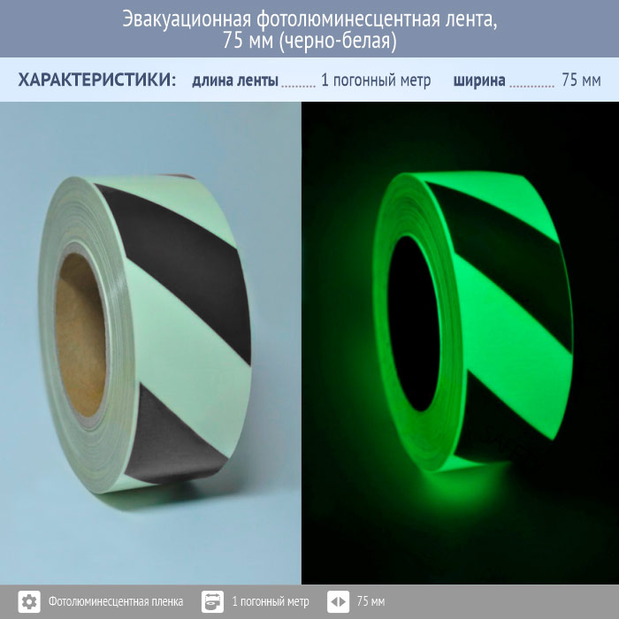 Эвакуационная фотолюминесцентная лента, 75 мм (черно-белая) в Бердске купить