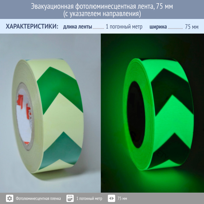 Эвакуационная фотолюминесцентная лента, 75 мм (с указателем направления) в Бердске купить