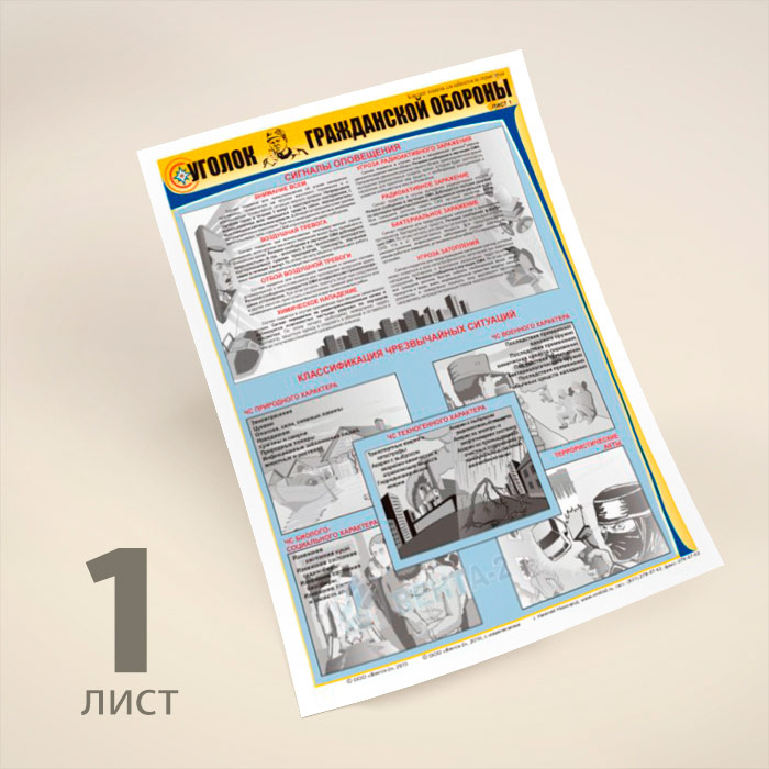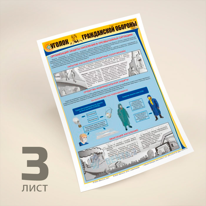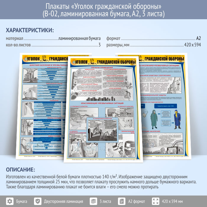 Плакаты «Уголок гражданской обороны» (В-02, ламинированная бумага, А2, 3 листа) в Бердске купить