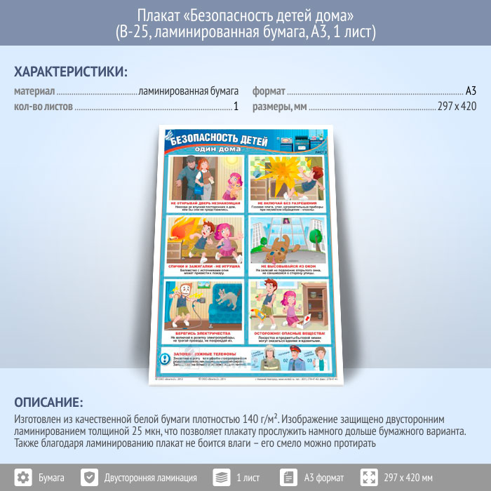 Плакат «Безопасность детей дома» (В-25, ламинированная бумага, А3, 1 лист) в Бердске купить