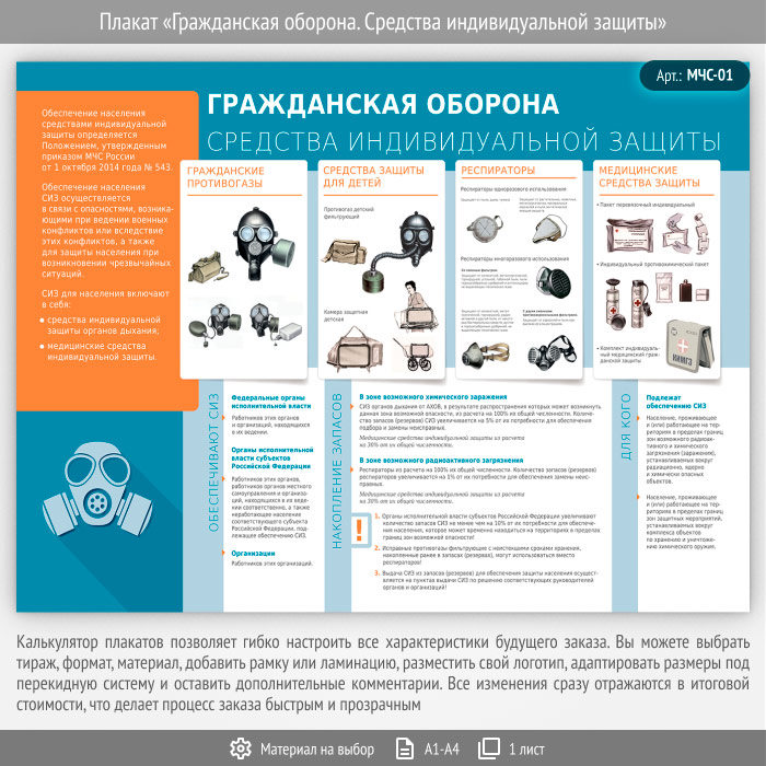 Плакат «Гражданская оборона. Средства индивидуальной защиты» (МЧС-01, 1 лист) в Бердске купить