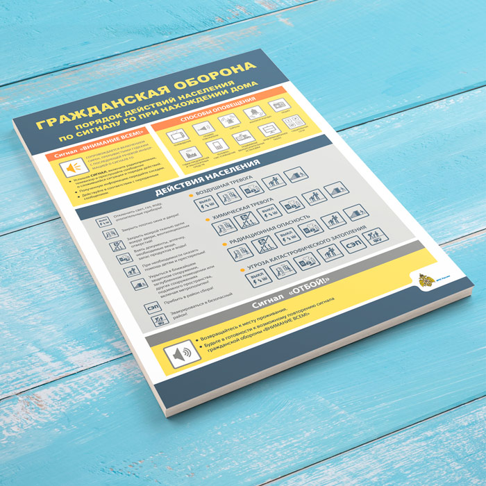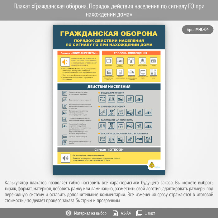Плакат «Гражданская оборона. Порядок действия населения по сигналу ГО при нахождении дома» (МЧС-04, 1 лист) в Бердске купить