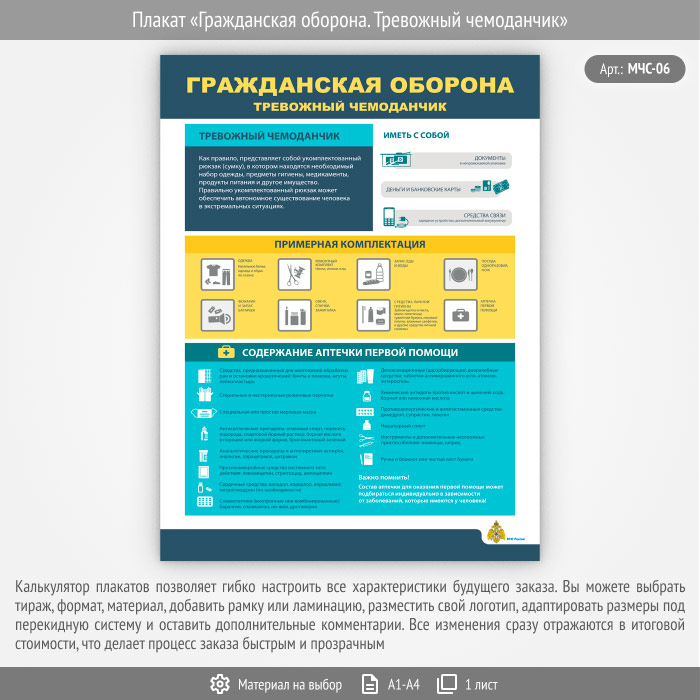 Плакат «Гражданская оборона. Тревожный чемоданчик» (МЧС-06, 1 лист) в Бердске купить