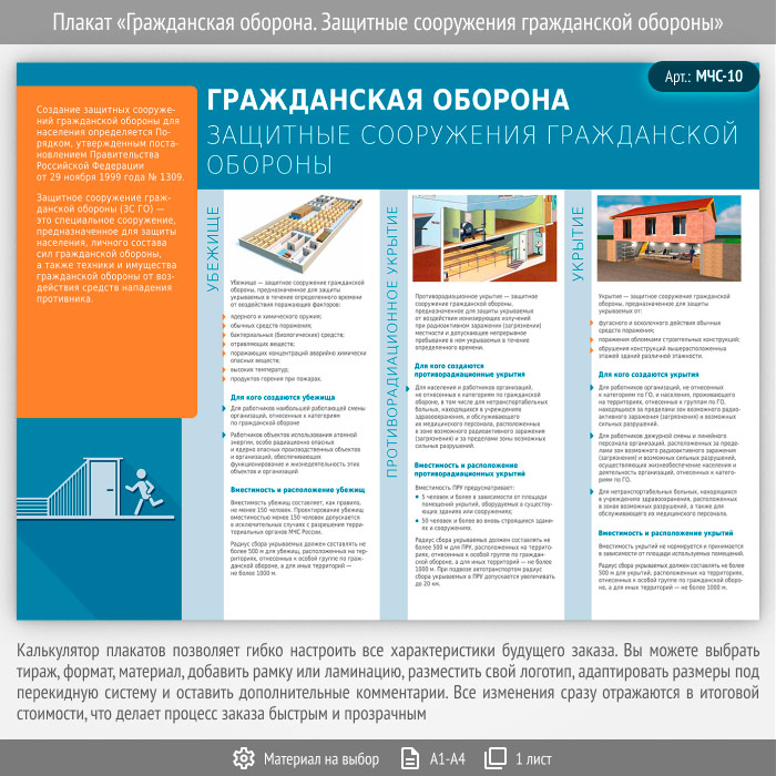 Плакат «Гражданская оборона. Защитные сооружения гражданской обороны» (МЧС-10, 1 лист) в Бердске купить