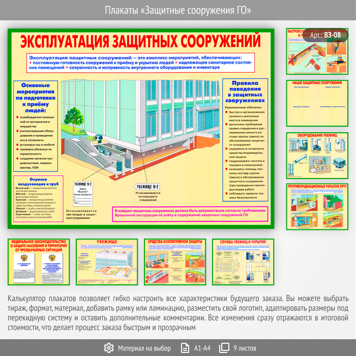 Плакаты «Защитные сооружения ГО» (ВЗ-08, 9 листов) в Бердске купить