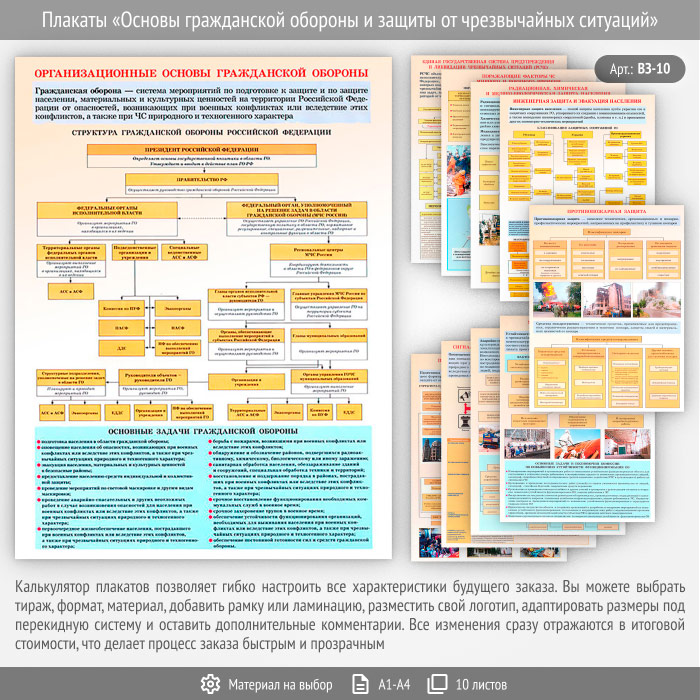 Плакаты «Основы гражданской обороны и защиты от чрезвычайных ситуаций» (ВЗ-10, 10 листов) в Бердске купить
