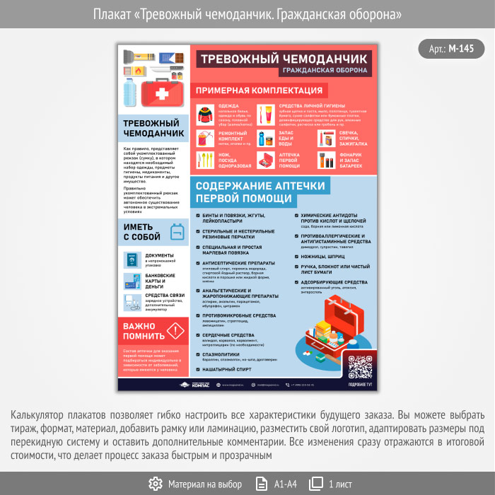 Плакат «Тревожный чемоданчик. Гражданская оборона» с QR (М-145, 1 лист) в Бердске купить