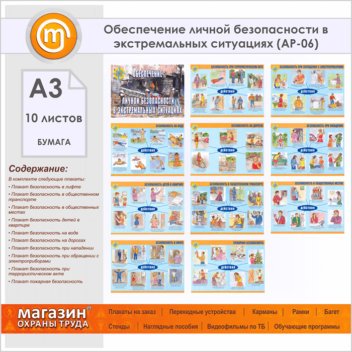 Плакаты «Обеспечение личной безопасности в экстремальных ситуациях» (АР-06, бумага, А3, 10 листов) в Бердске купить