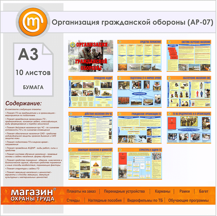 Плакаты «Организация гражданской обороны» (АР-07, бумага, А3, 10 листов) в Бердске купить