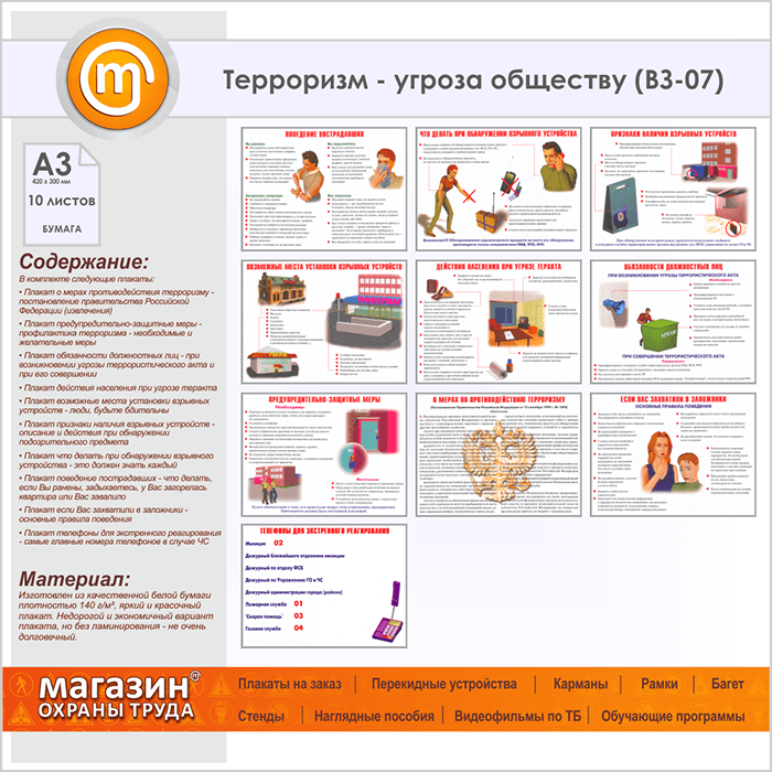 Плакаты «Терроризм - угроза обществу» (ВЗ-07, бумага, А3, 10 листов) в Бердске купить