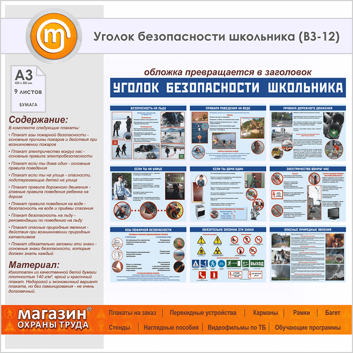 Плакаты «Уголок безопасности школьника» (ВЗ-12, бумага, А3, 10 листов) в Бердске купить
