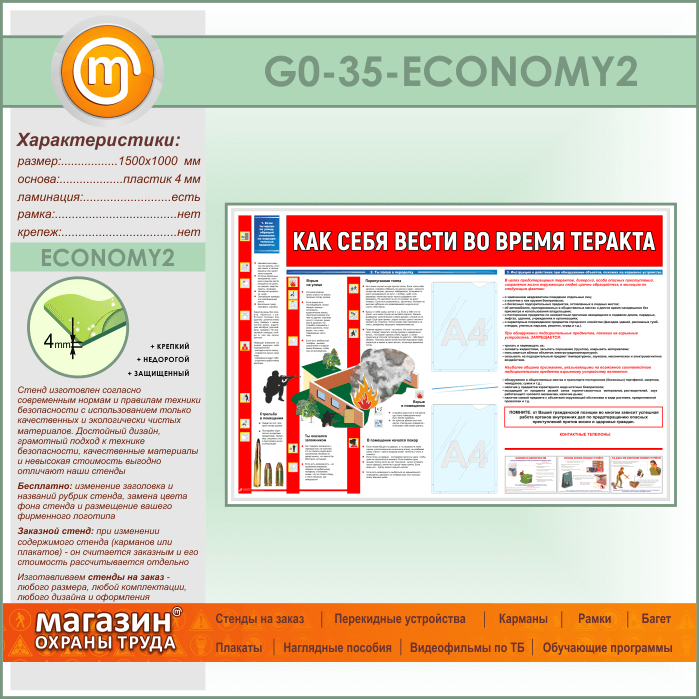 Стенд «Как себя вести во время теракта» c 2 карманами (GO-35-ECONOMY2) в Бердске купить