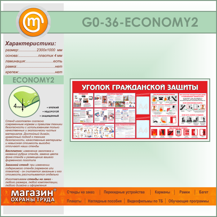 Стенд «Уголок гражданской защиты» c 2 карманами (GO-36-ECONOMY2) в Бердске купить