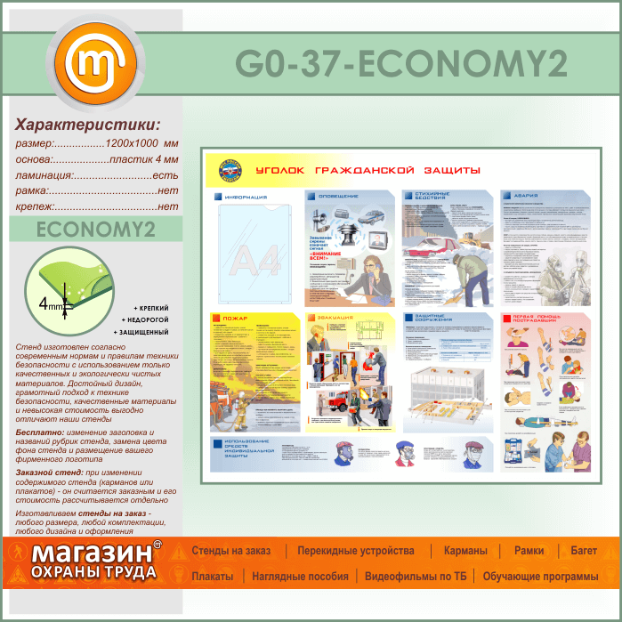 Стенд «Уголок гражданской защиты» с карманом (GO-37-ECONOMY2) в Бердске купить