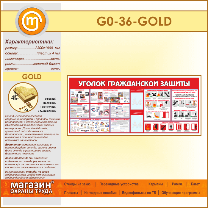 Стенд «Уголок гражданской защиты» c 2 карманами (GO-36-GOLD) в Бердске купить