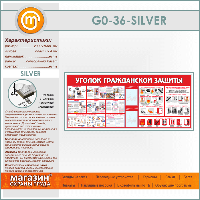 Стенд «Уголок гражданской защиты» c 2 карманами (GO-36-SILVER) в Бердске купить