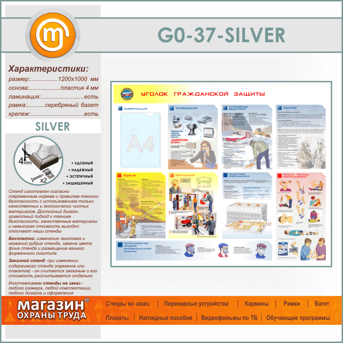 Стенд «Уголок гражданской защиты» с карманом (GO-37-SILVER) в Бердске купить