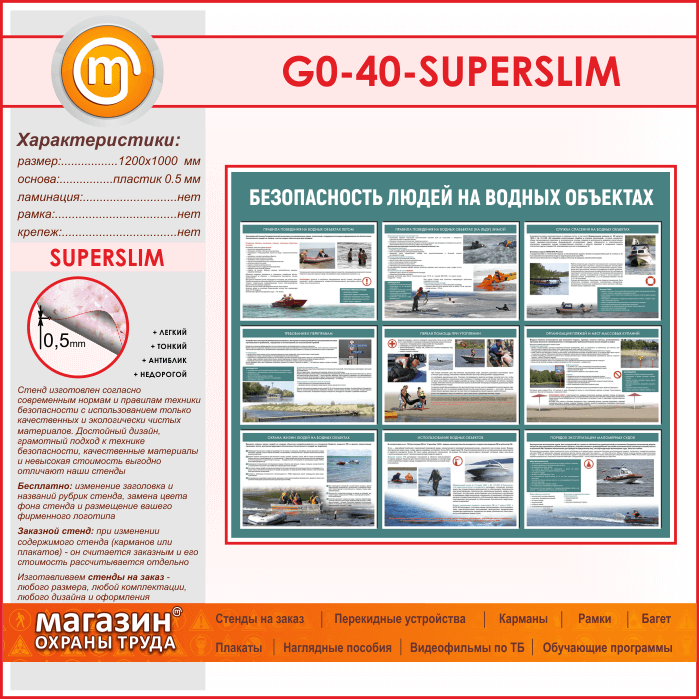 Стенд «Безопасность людей на водных объектах» (GO-40-SUPERSLIM) в Бердске купить