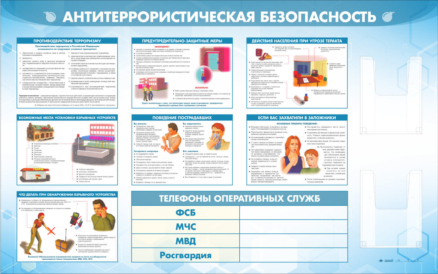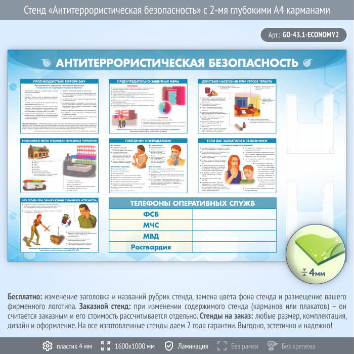Стенд «Антитеррористическая безопасность» с 2-мя глубокими А4 карманами (GO-43.1-ECONOMY2) в Бердске купить