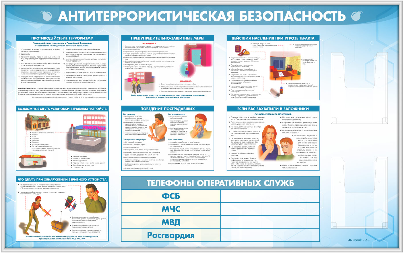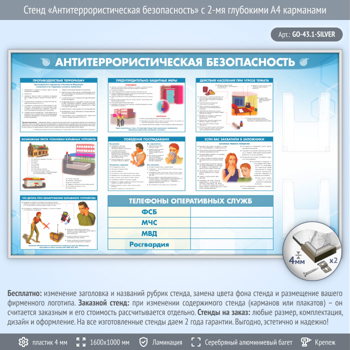 Стенд «Антитеррористическая безопасность» с 2-мя глубокими А4 карманами (GO-43.1-SILVER) в Бердске купить