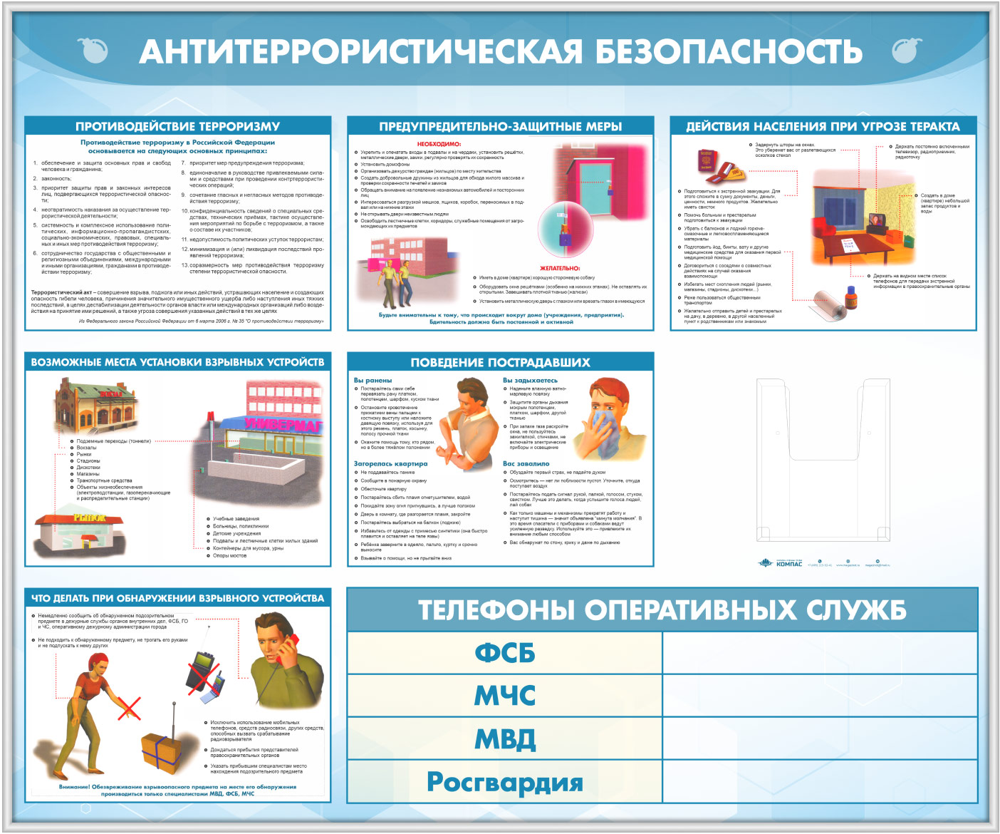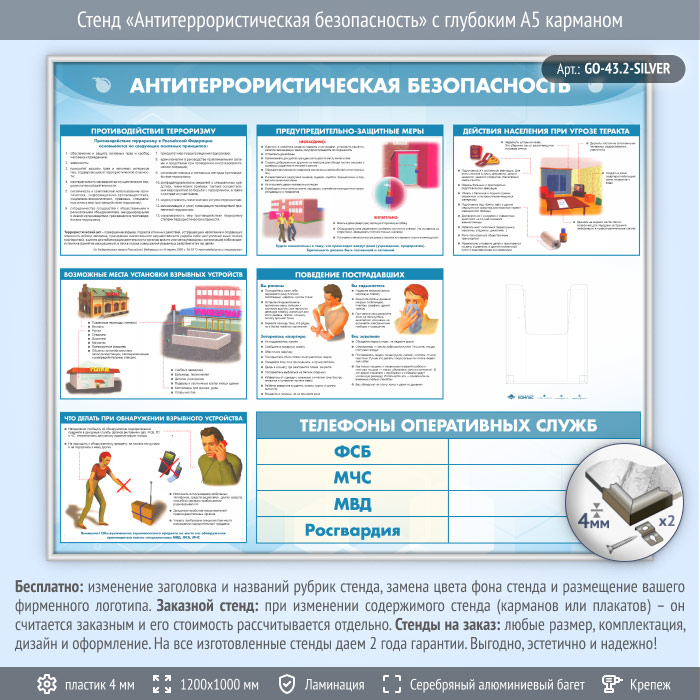 Стенд «Антитеррористическая безопасность» с глубоким А5 карманом (GO-43.2-SILVER) в Бердске купить