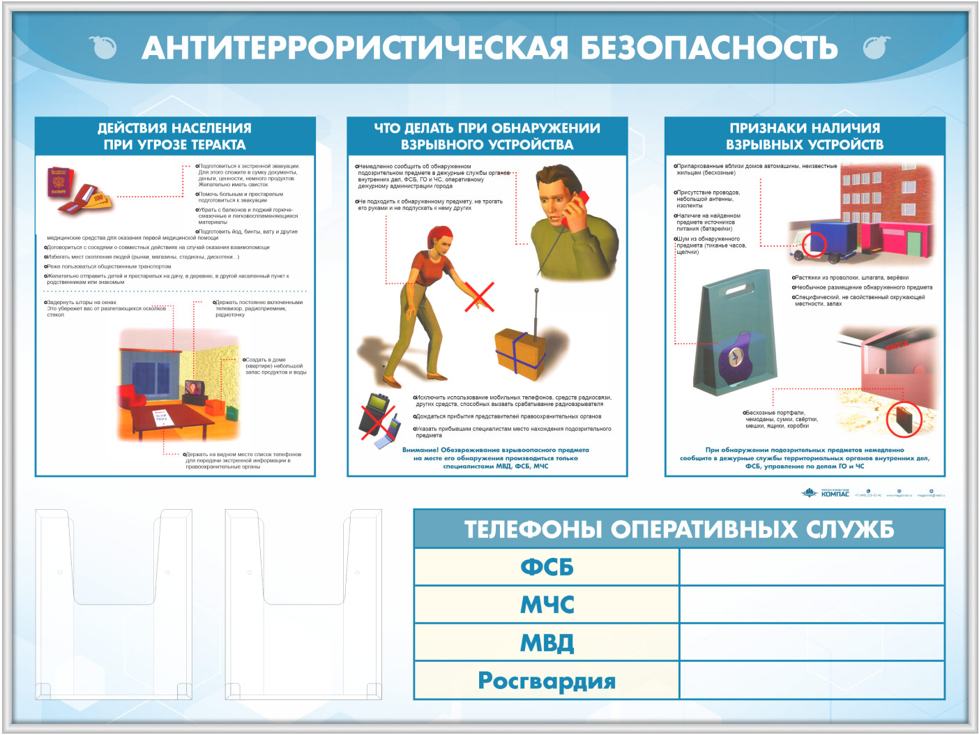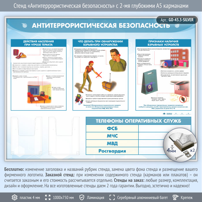 Стенд «Антитеррористическая безопасность» с 2-мя глубокими А5 карманами (GO-43.3-SILVER) в Бердске купить