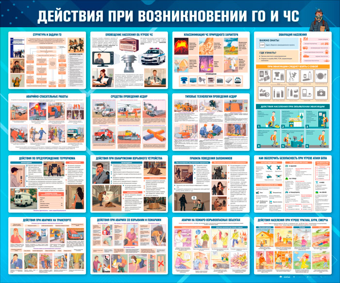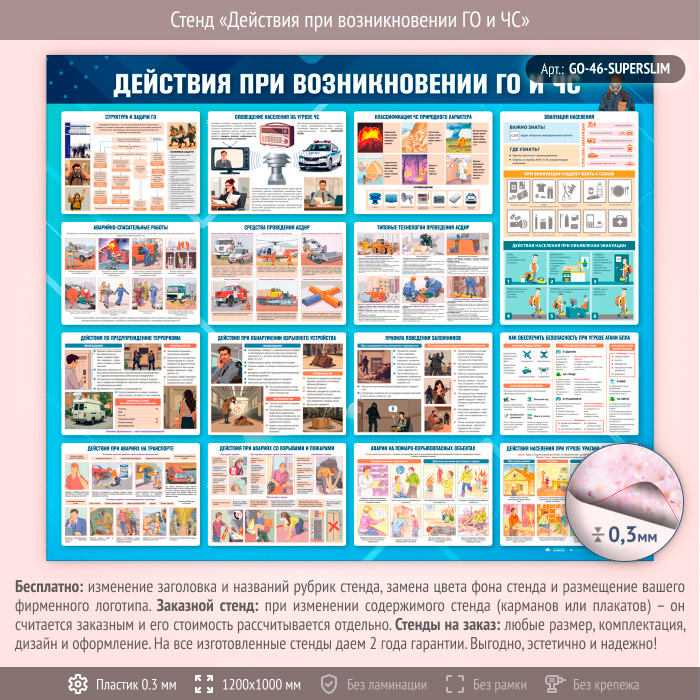 Стенд «Действия при возникновении ГО и ЧС» (GO-46-SUPERSLIM) в Бердске купить