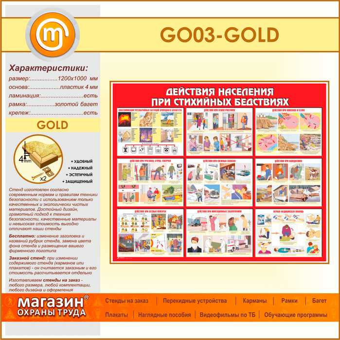 Стенд «Действия населения при стихийных бедствиях» (GO-03-GOLD) в Бердске купить