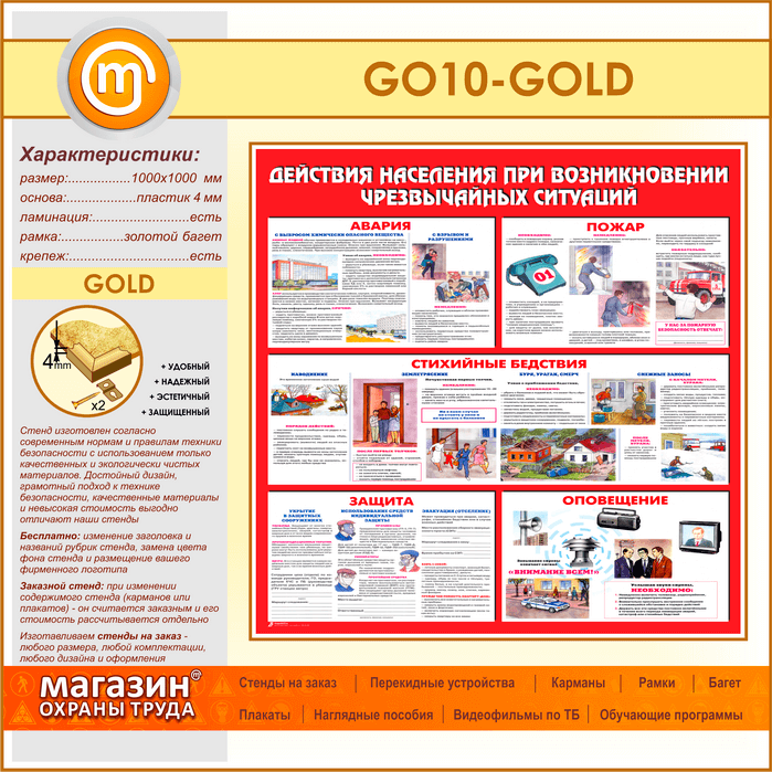 Стенд «Действия населения при возникновении чрезвычайных ситуаций» (GO-10-GOLD) в Бердске купить