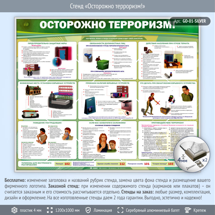 Стенд «Осторожно терроризм!» (GO-01-SILVER) в Бердске купить