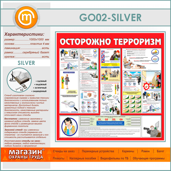 Стенд «Осторожно терроризм!» (GO-02-SILVER) в Бердске купить