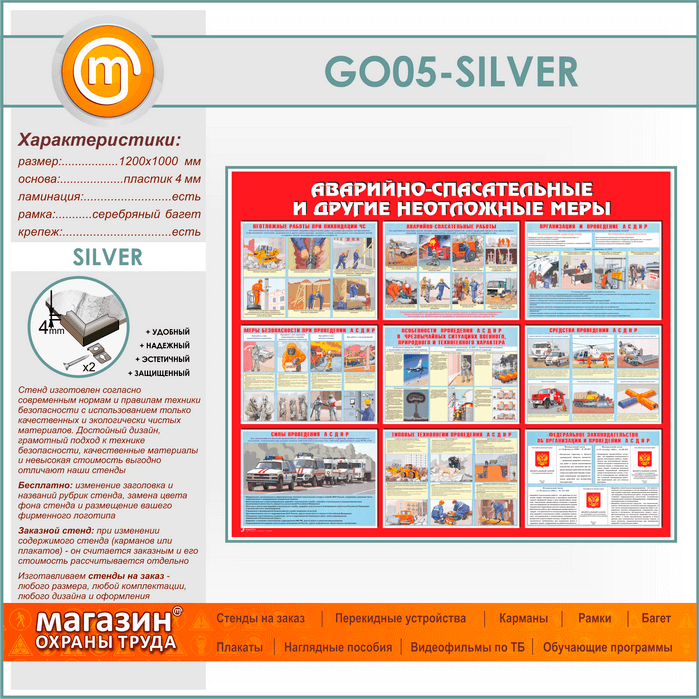 Стенд «Аварийно-спасательные и другие неотложные меры» (GO-05-SILVER) в Бердске купить