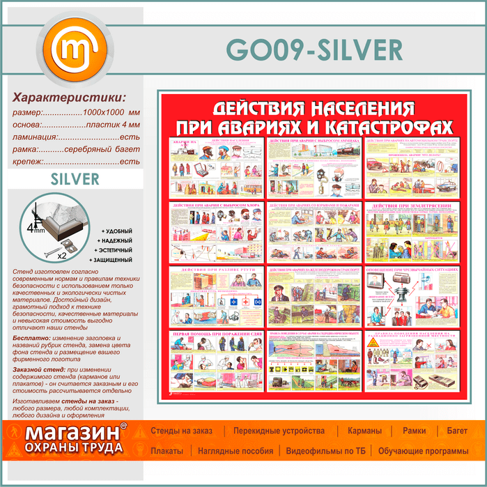 Стенд «Действия населения при авариях и катастрофах» (GO-09-SILVER) в Бердске купить
