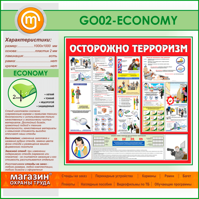 Стенд «Осторожно терроризм!» (GO-02-ECONOMY) в Бердске купить