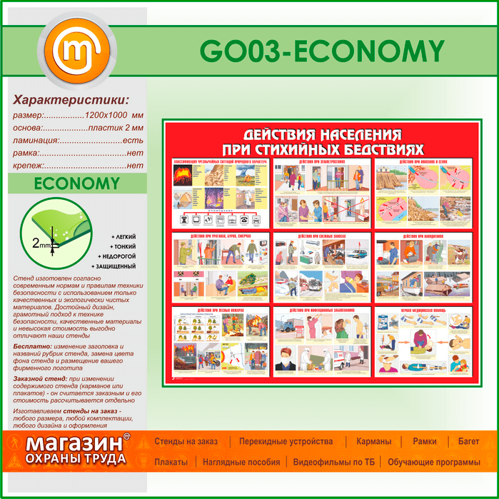 Стенд «Действия населения при стихийных бедствиях» (GO-03-ECONOMY) в Бердске купить