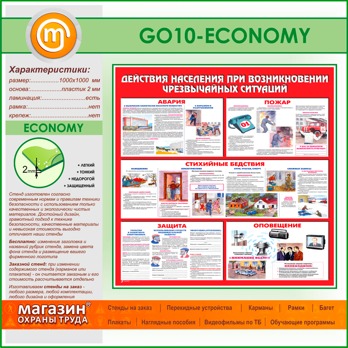 Стенд «Действия населения при возникновении чрезвычайных ситуаций» (GO-10-ECONOMY) в Бердске купить