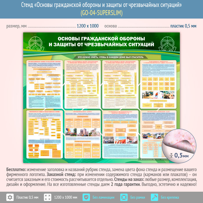Стенд «Основы гражданской обороны и защиты от чрезвычайных ситуаций» (GO-04-SUPERSLIM) в Бердске купить