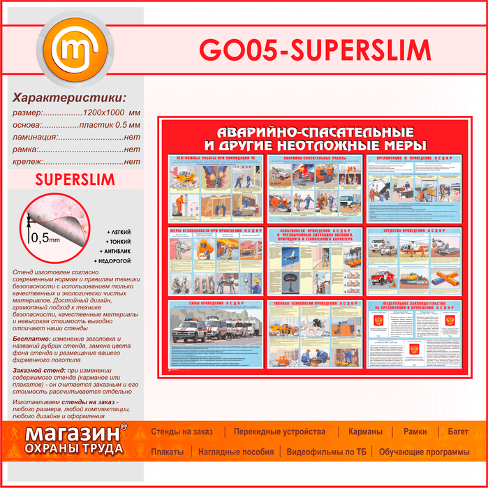 Стенд «Аварийно-спасательные и другие неотложные меры» (GO-05-SUPERSLIM) в Бердске купить