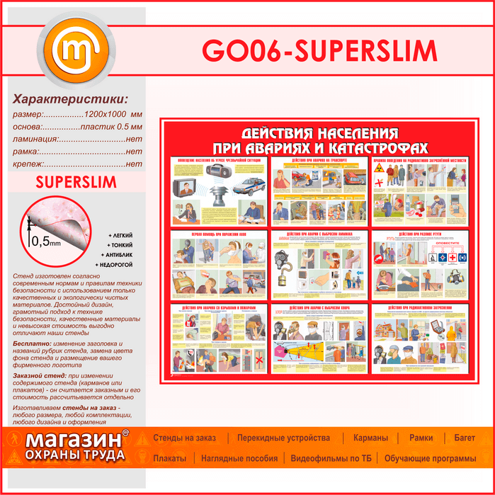Стенд «Действия населения при авариях и катастрофах» (GO-06-SUPERSLIM) в Бердске купить