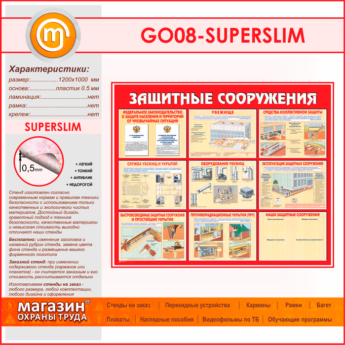 Стенд «Защитные сооружения» (GO-08-SUPERSLIM) в Бердске купить