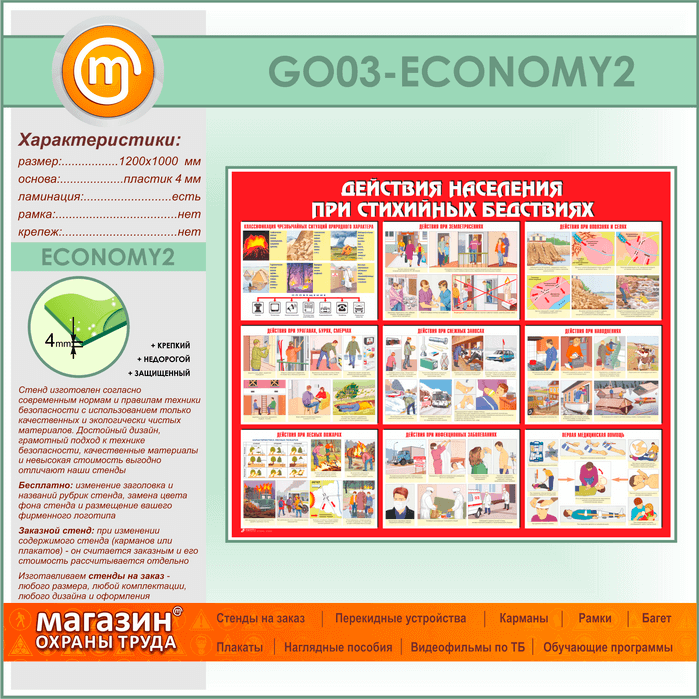 Стенд «Действия населения при стихийных бедствиях» (GO-03-ECONOMY2) в Бердске купить